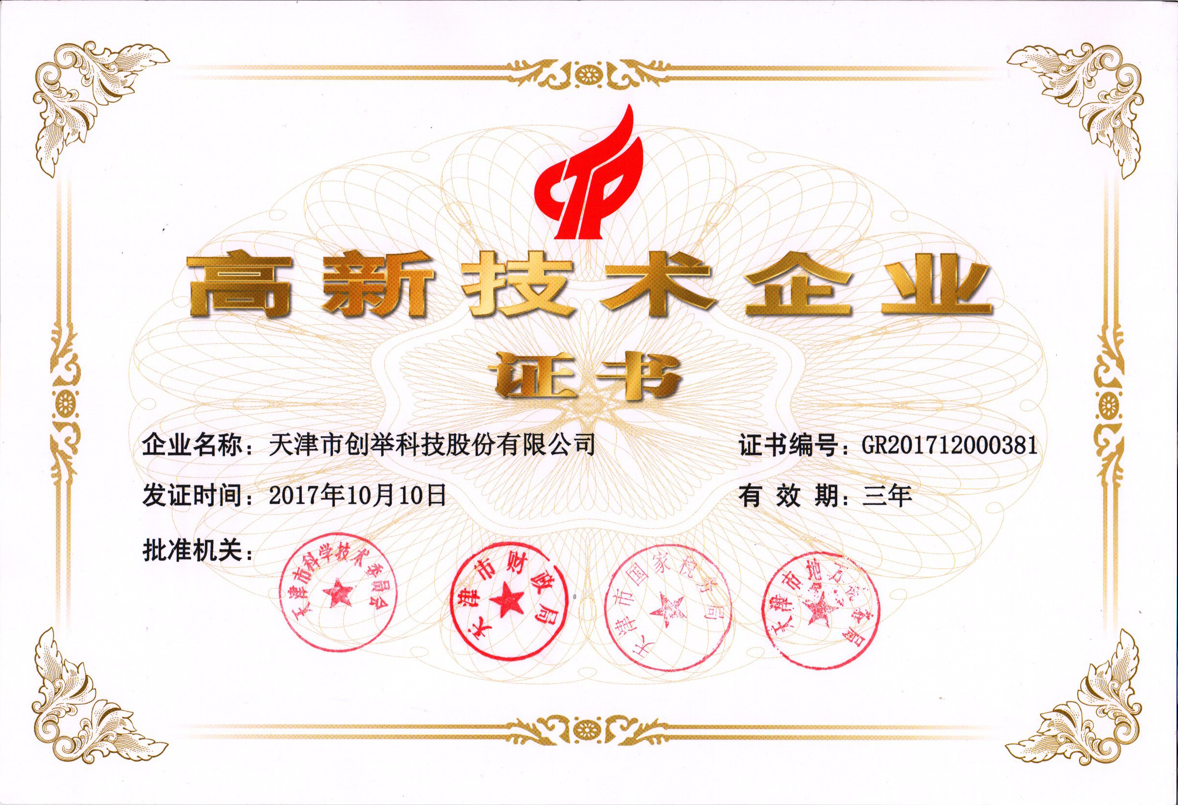 2017年 公司喬遷新址,同年完成股份制改造更名為天津市創(chuàng )舉科技股份有限公司,成功掛牌新三板。