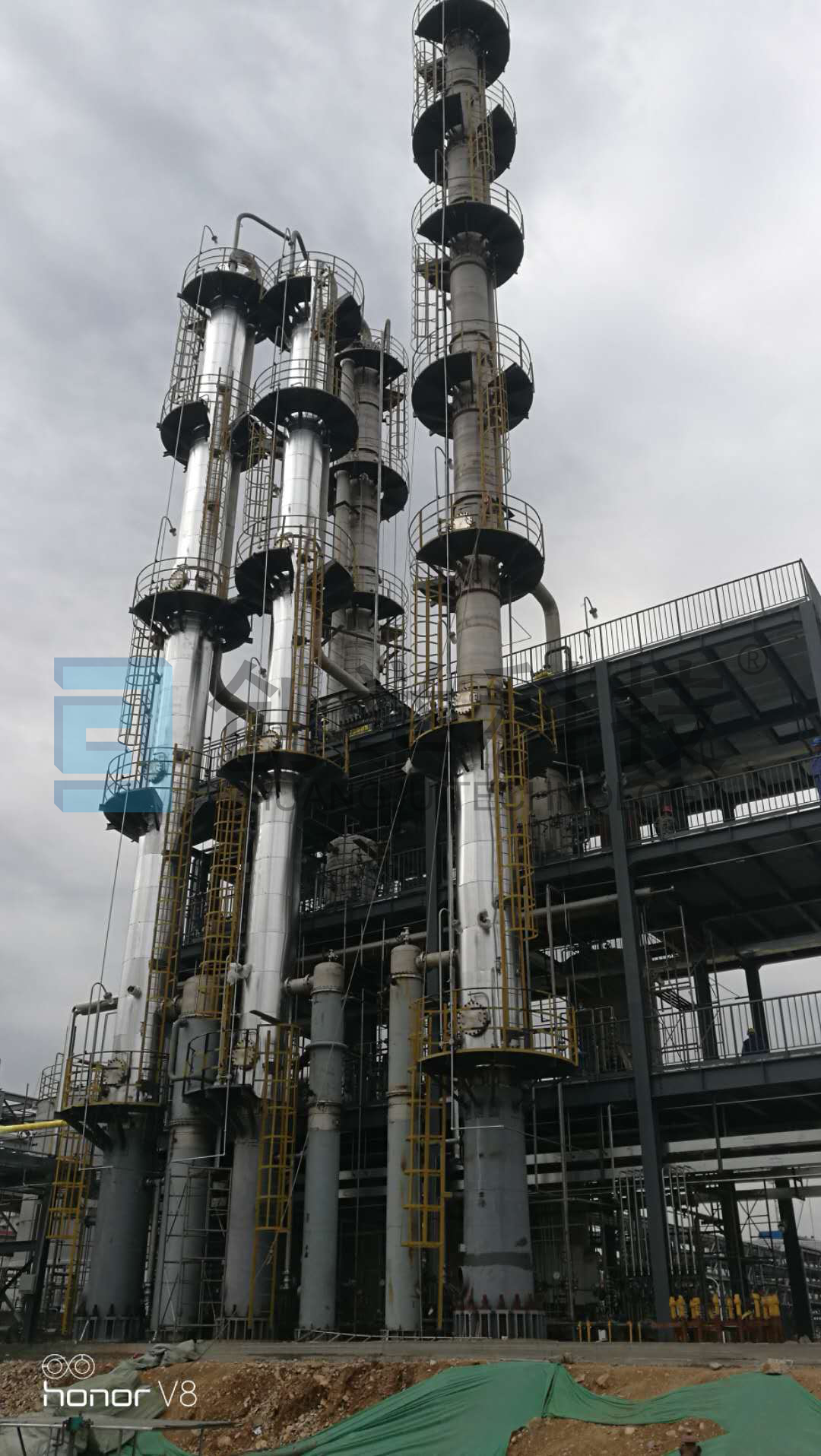 2018年唐山某公司與我公司簽訂年產(chǎn)1萬(wàn)噸/年1,6-2二醇生產(chǎn)工藝包合同,并由我公司負責工藝包在內的所有主體設備的設計及制造工作。本套精餾系統是國內第一套對雜醇進(jìn)行精餾提質(zhì)裝置,屬于新型工藝路線(xiàn)創(chuàng )新項目。上游反應階段生成的的副產(chǎn)物多且物性復雜,產(chǎn)品精餾提純難度大。本系統產(chǎn)品精餾提純的前期實(shí)驗、數據收集及工藝流程路線(xiàn)設定及優(yōu)化均為我公司與中溶科技共同完成,并由我公司根據實(shí)驗結果進(jìn)行軟件模擬仿真計算及數據偏離修正,確定最終工藝系統方案。