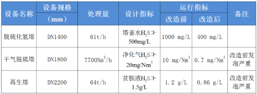 胺液是一種在濕法脫硫過(guò)程中經(jīng)常用到的溶液。由于其具有極易發(fā)泡的性質(zhì),干氣脫硫塔和再生塔在運行過(guò)程中都存在溶劑發(fā)泡淹塔的情況。且干氣脫硫塔較為明顯,出現全塔壓差增大,凈化干氣帶液嚴重的現象。在裝置整體未達到設計負荷的情況下,再生塔存在塔頂酸性氣產(chǎn)量較設計量大帶液嚴重的情況。