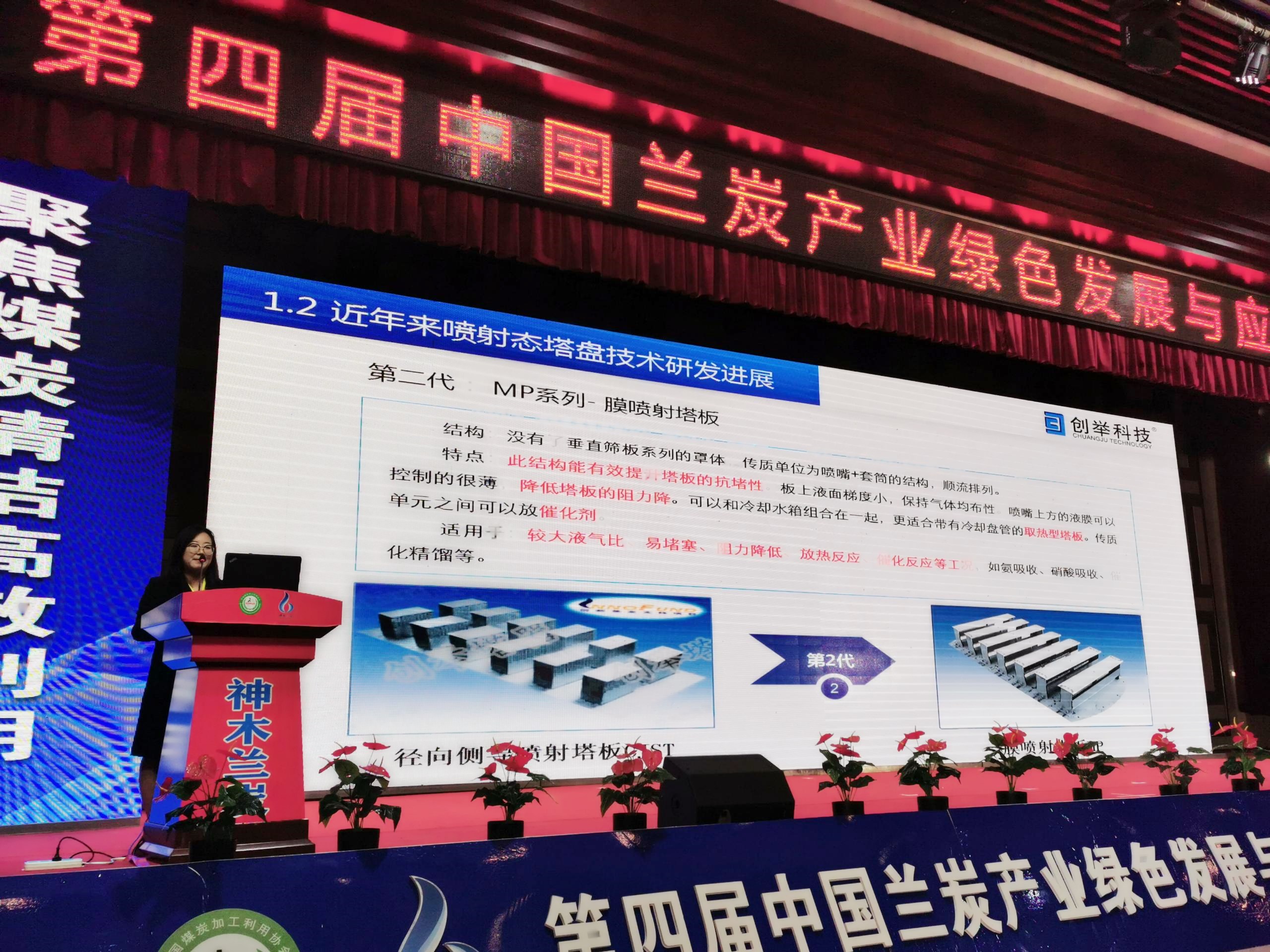 創(chuàng )舉科技技術(shù)部長(cháng)趙順雯以《高效噴射塔盤(pán)技術(shù)在蘭炭及煤化工領(lǐng)域的廣泛應用》為題展開(kāi)精彩的演講,會(huì )上創(chuàng )舉科技高效噴射態(tài)塔盤(pán)技術(shù)受到了與會(huì )專(zhuān)家的廣泛關(guān)注。