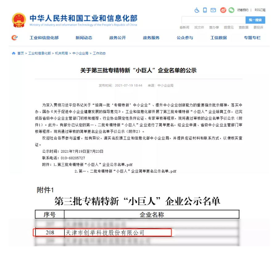 近日,國家工業(yè)和信息化部發(fā)布第三批專(zhuān)精特新“小巨人”企業(yè)名單,天津市創(chuàng )舉科技股份有限公司榮列其中,獲得國家級專(zhuān)精特新“小巨人”企業(yè)榮譽(yù)稱(chēng)號。
