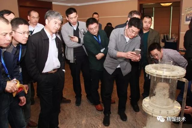 嘉賓們還觀(guān)摩了創(chuàng )舉帶來(lái)的冷模實(shí)驗塔,對逆流系列塔板的技術(shù)有了直觀(guān)的認識。