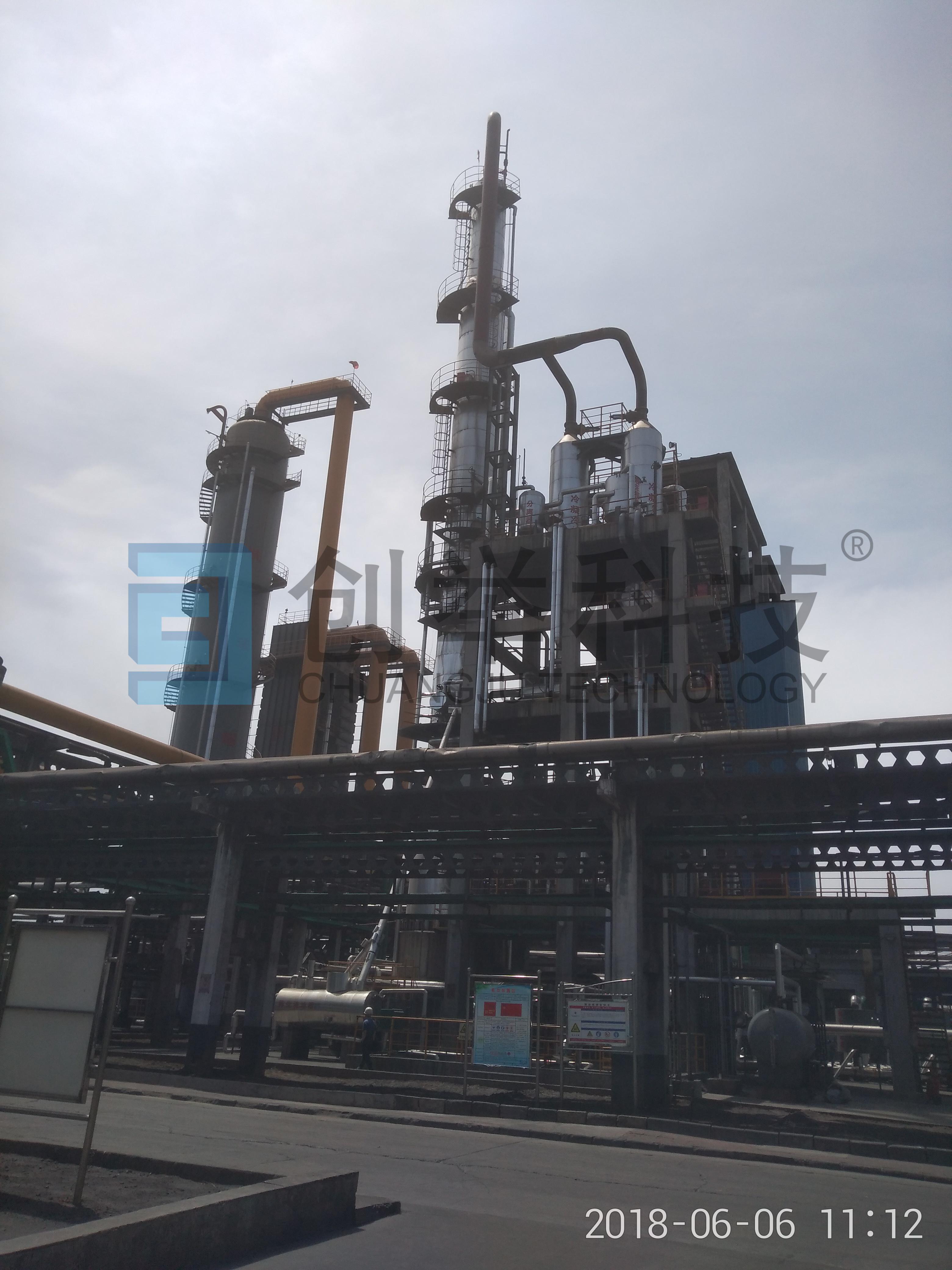 蒸氨工段采用再沸器間接加熱塔釜廢水產(chǎn)生蒸汽進(jìn)行氣體蒸氨,塔頂抽負壓降低氨分壓的負壓招蒸氨工藝。此工藝優(yōu)勢為蒸汽間接加熱方式,產(chǎn)生的蒸汽冷凝水不進(jìn)入蒸氨廢水中,減少了生化處理的壓力和費用,而且冷凝水還可以用到其余需要補水工段。目前運行蒸氨廢水氨氮≤150PPM,塔頂濃氨水≥10%,指標完全優(yōu)于涉及指標。